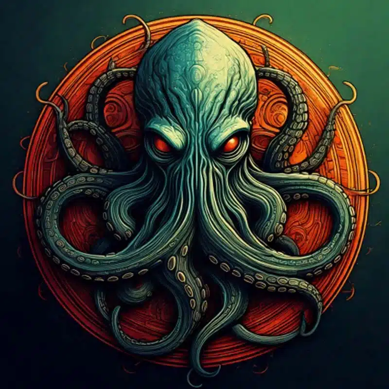 Wir wollen jetzt nicht weiter auf das Universums des Schreckens eingehen, das Lovecraft und weitere Autoren hier geschaffen haben. Nur soviel: Es geht um uralte Götter, die irgendwo im Universum herumschwirren, aber auch auf der Erde ihre Spuren hinterlassen haben und zum Teil von Menschen angebetet werden. Die Folgen sind in der Regel negativ, und die Zahl der Überlebenden ist stets überschaubar. Dieser Kult ist Gegenstand zahlreicher Filme, Bücher, Musikstücke und Spiele. Für ein eigenes Projekt in diesem Kontext brauchten wir ein angemessenes Logo.